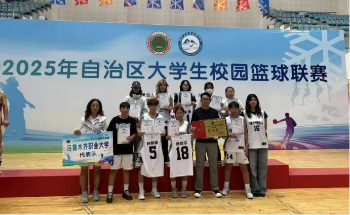 在刚刚落幕的2025年自治区大学生校园篮球联赛中,乌鲁木齐职业大学女子篮球队以坚韧的意志与出色的团队协作,勇夺女子丙组第四名,并斩获“优秀教练员”“优秀运动员”等多项荣誉,为学校体育事业再添辉煌一笔!