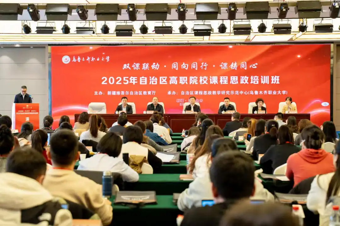 11月16日,由自治区教育厅主办、乌鲁木齐职业大学承办的2025年自治区高职院校课程思政培训班在乌鲁木齐市尚德国际酒店顺利开班。校党委书记唐晓冰,校党委委员、副校长热依汗·艾合买提,自治区教育厅思想政治工作处副处长(三级调研员)邹伟,乌鲁木齐市教育局副局长郑阳,市教育局及我校相关部门负责同志出席开班仪式。开班仪式由副校长孙晓伟主持。